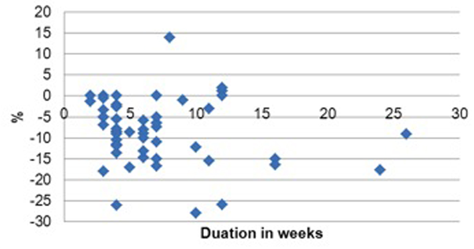- In terms of nutritional screening, on admission 79/93 (85%) patients had evidence of a completed MUST although in 10% of these it was incorrect as recent weight loss had not been appropriately considered. In 52 (56%) there was evidence of post-operative weight measurement performed an average of 7 weeks (range 2 – 26 weeks) after operation. 31% had lost >10% weight compared with pre-surgery values (Figure A).